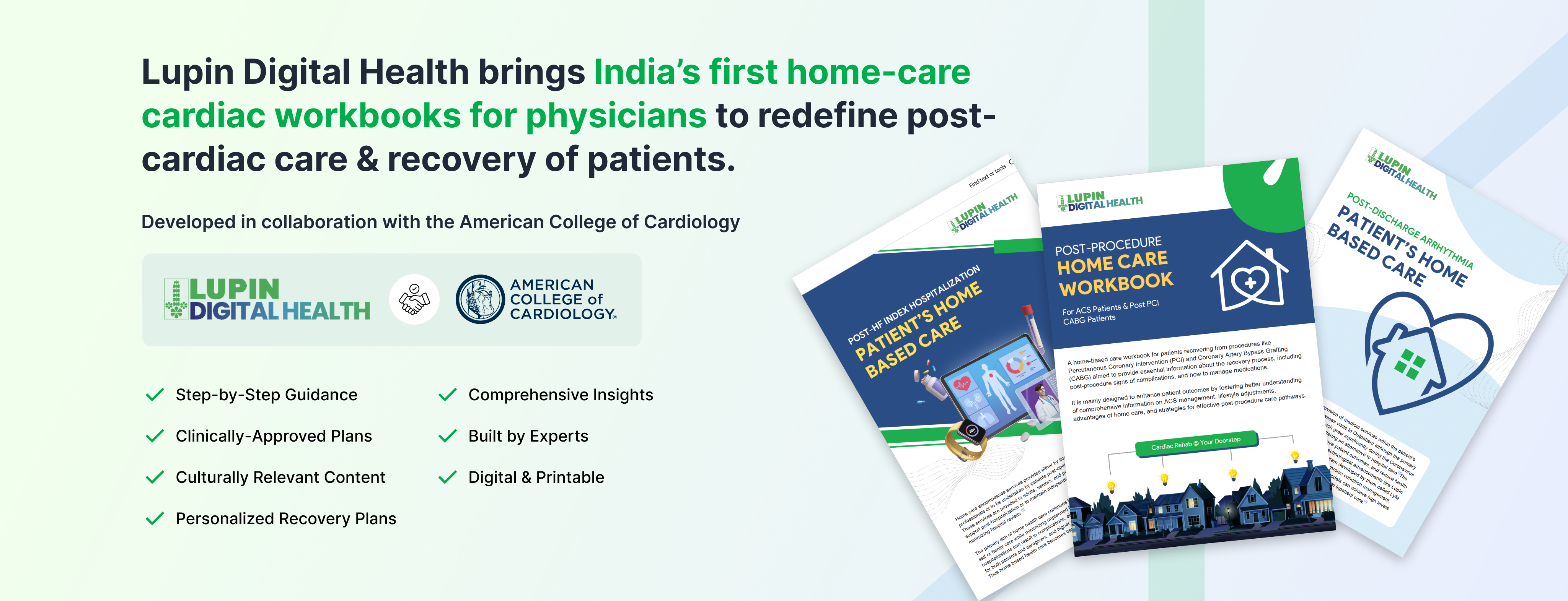 With 200+ hours of research, insights from 100+ leading cardiologists, and 6 collaborative sessions with ACC work-groups, we developed three revolutionary workbooks. These bridge critical gaps in post-cardiac care and rehabilitation, tailored to meet the needs of India’s population.